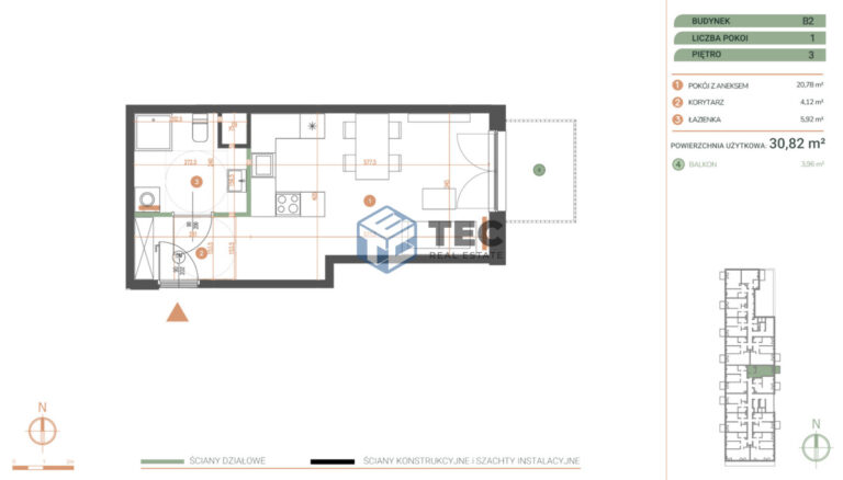 Mieszkanie 1-pokojowe 31m² – Kraków
