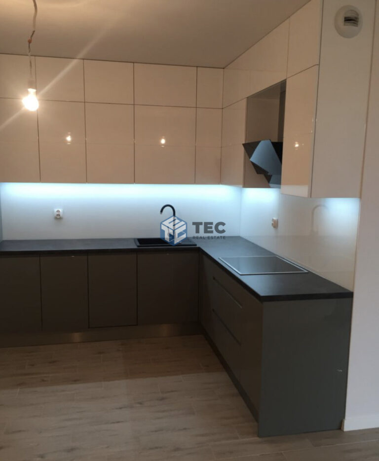Kuchnia została wykonana na wymiar przez stolarza wraz z kompletnym sprzętem AGD. Wszystkie elementy stałej zabudowy, oświetlenie, drzwi, łazienka w pełni wyposażona z szafką i armaturą, widoczne na zdjęciach są wliczone w cenę mieszkania.