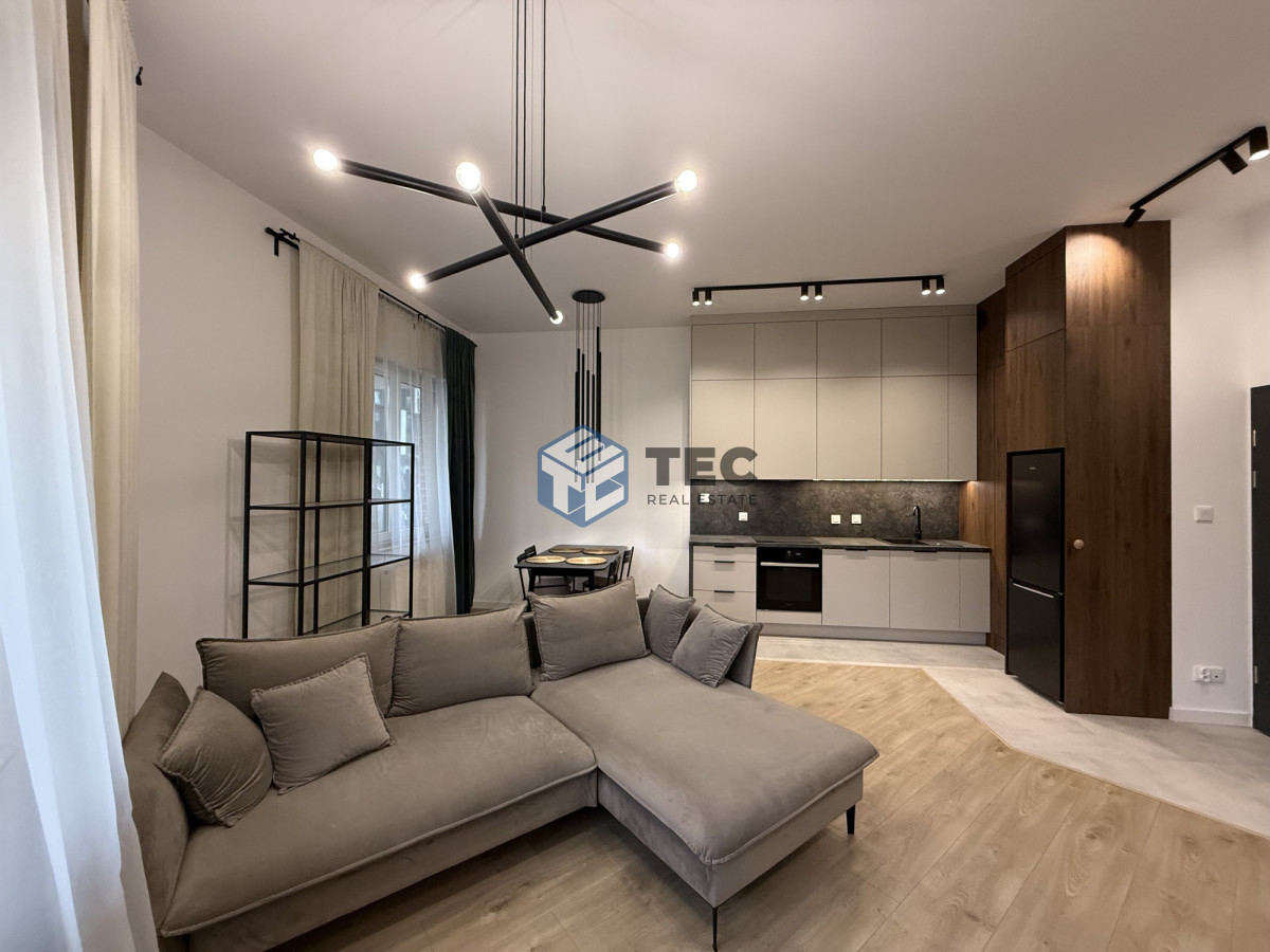 I am pleased to present a modern apartment with a total area of 41.75 m², located on the ground floor of an intimate building from 2021. This is a bright and functional space, perfect both as a comfortable home and as a commercial unit – ideal for an office, studio, or other business activity.