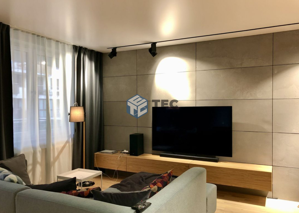 - Stolarka i podłogi: dębowa, bielona podłoga w całym mieszkaniu; sufit napinany z podświetleniem.