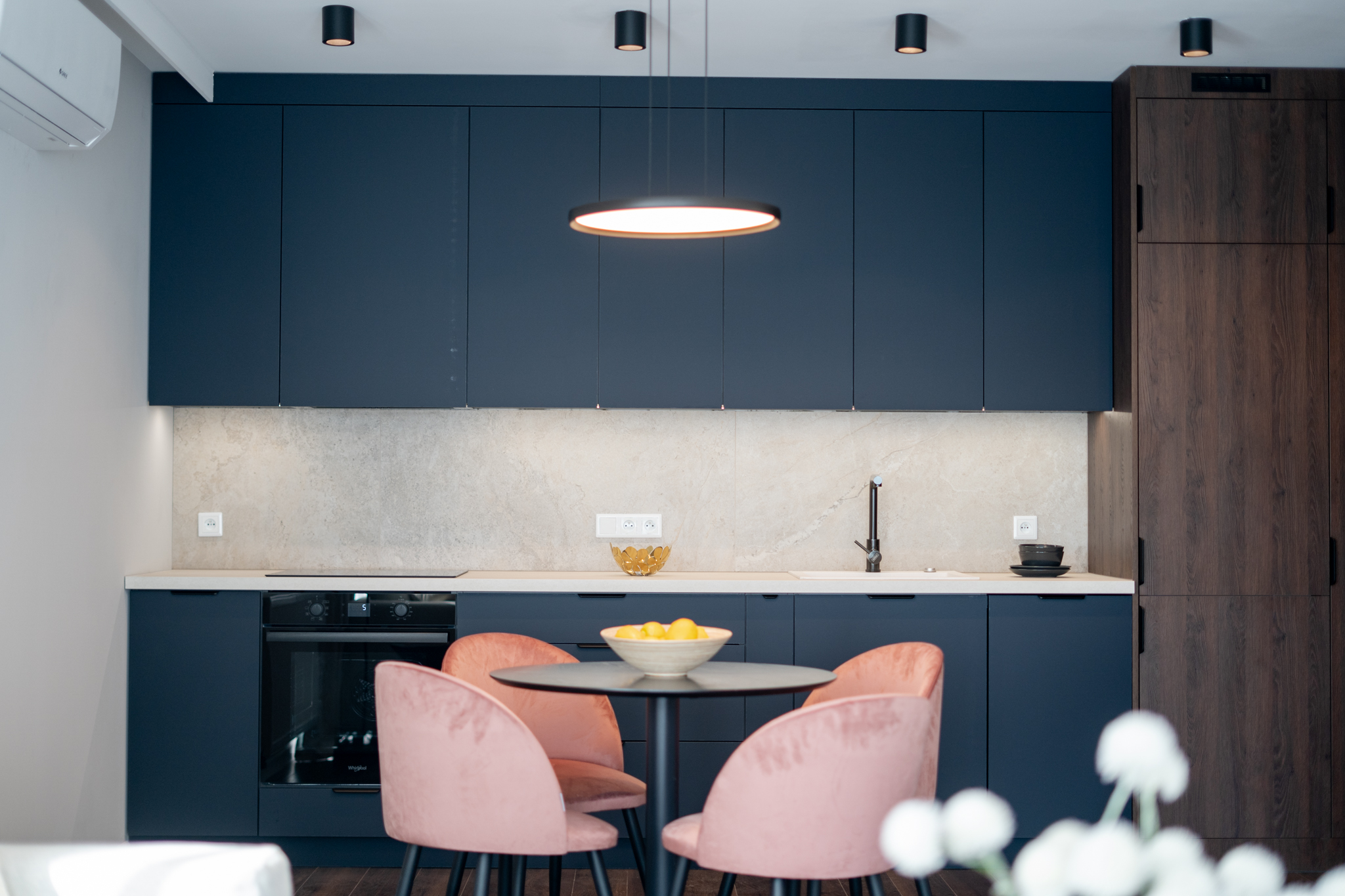 APARTAMENT ZAPROJEKTOWANY PRZEZ ARCHITEKTA, Z DBAŁOŚCIĄ O KAŻDY DETAL. W pełni umeblowany i wyposażony w sprzęt AGD -gotowy do zamieszkania! Narożny, dobrze doświetlony, z ekspozycją okien na południowy – zachód.