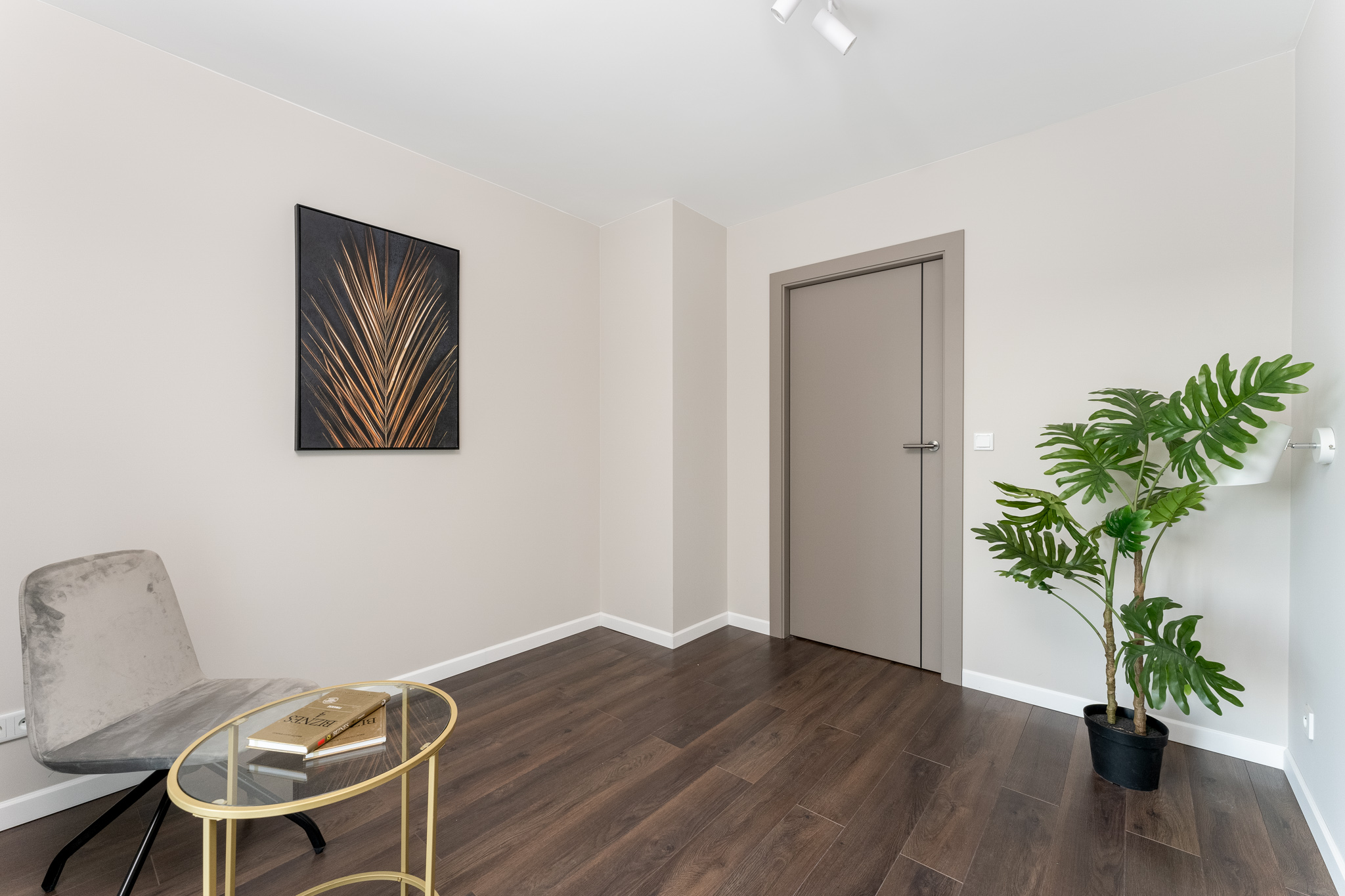 Na powierzchnię składa się salon z aneksem kuchennym, sypialnia, pokój biurowy, łazienka oraz przedpokój. Z salonu jak i z pokoju do pracy prowadzi wyjście na BALKON (4,27 m2).